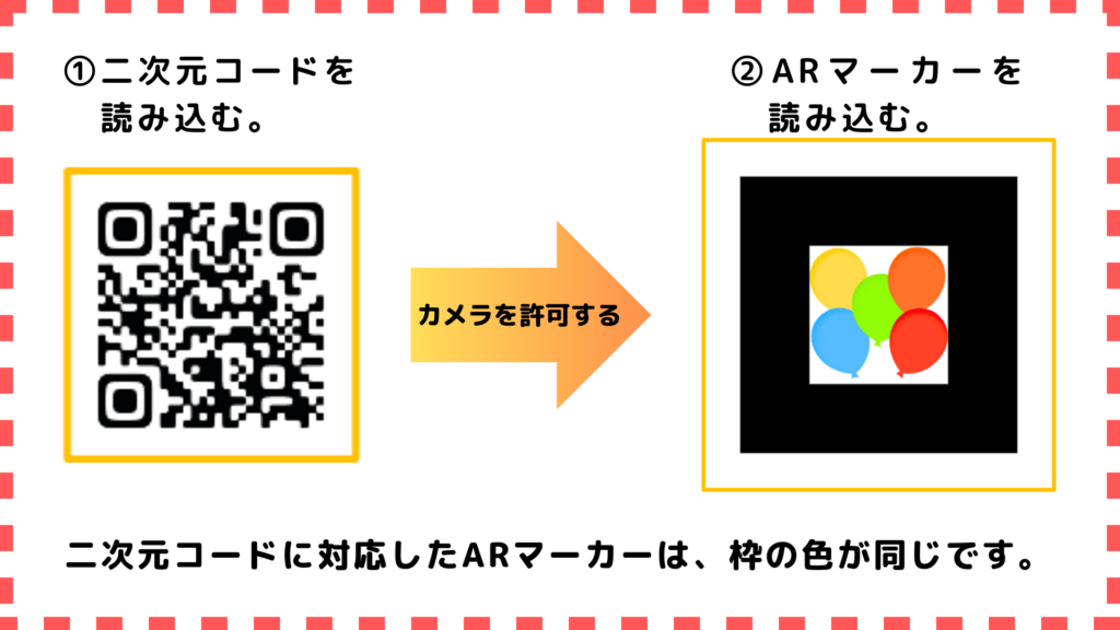 ※2:二次元コードに対応したARマーカーは、枠の色が同じです。