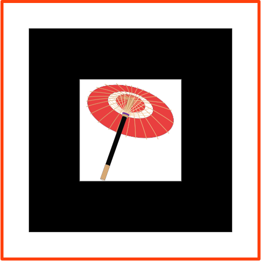 ARマーカーをかざすと、和傘が上から降ってきます。