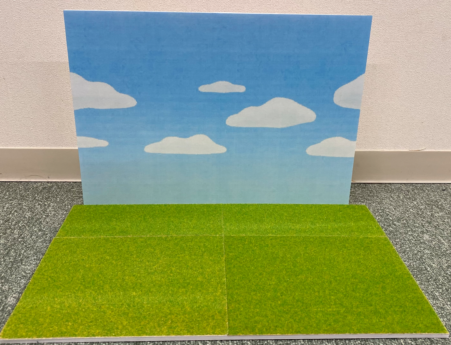 展示用セットを制作した理由は、AR作品と合った展示用の背景セットを作ることによって、世界観がより鮮明となり、AR作品に対する没入感が高まると考えたため、制作しました。